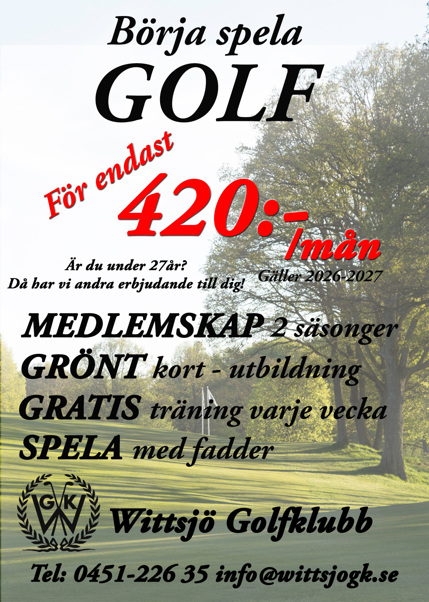 Vi erbjuder även gratis träning (för dig med handicap över 36) för Andreas varje onsdag under säsongen, anmälningslistor finns i klubbrummet.