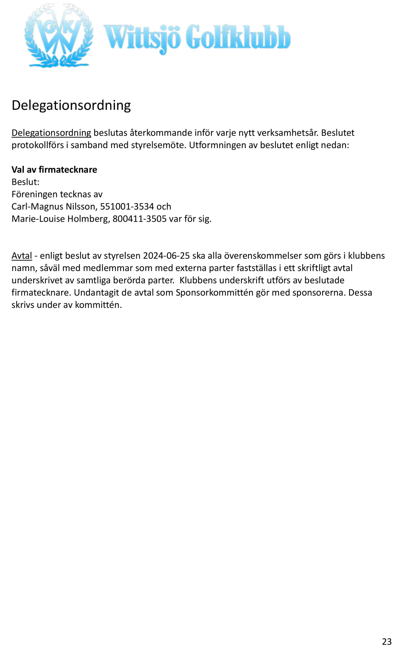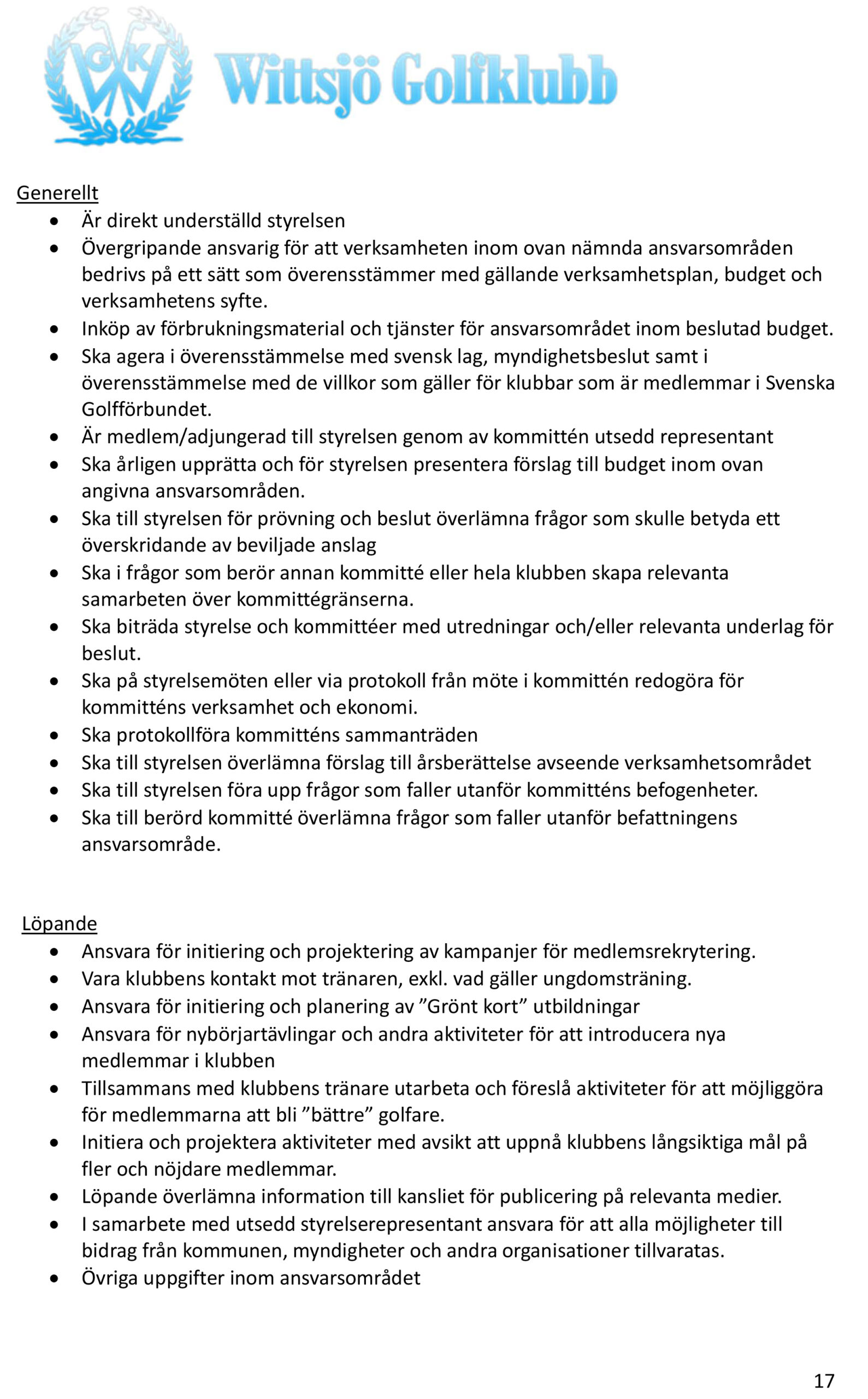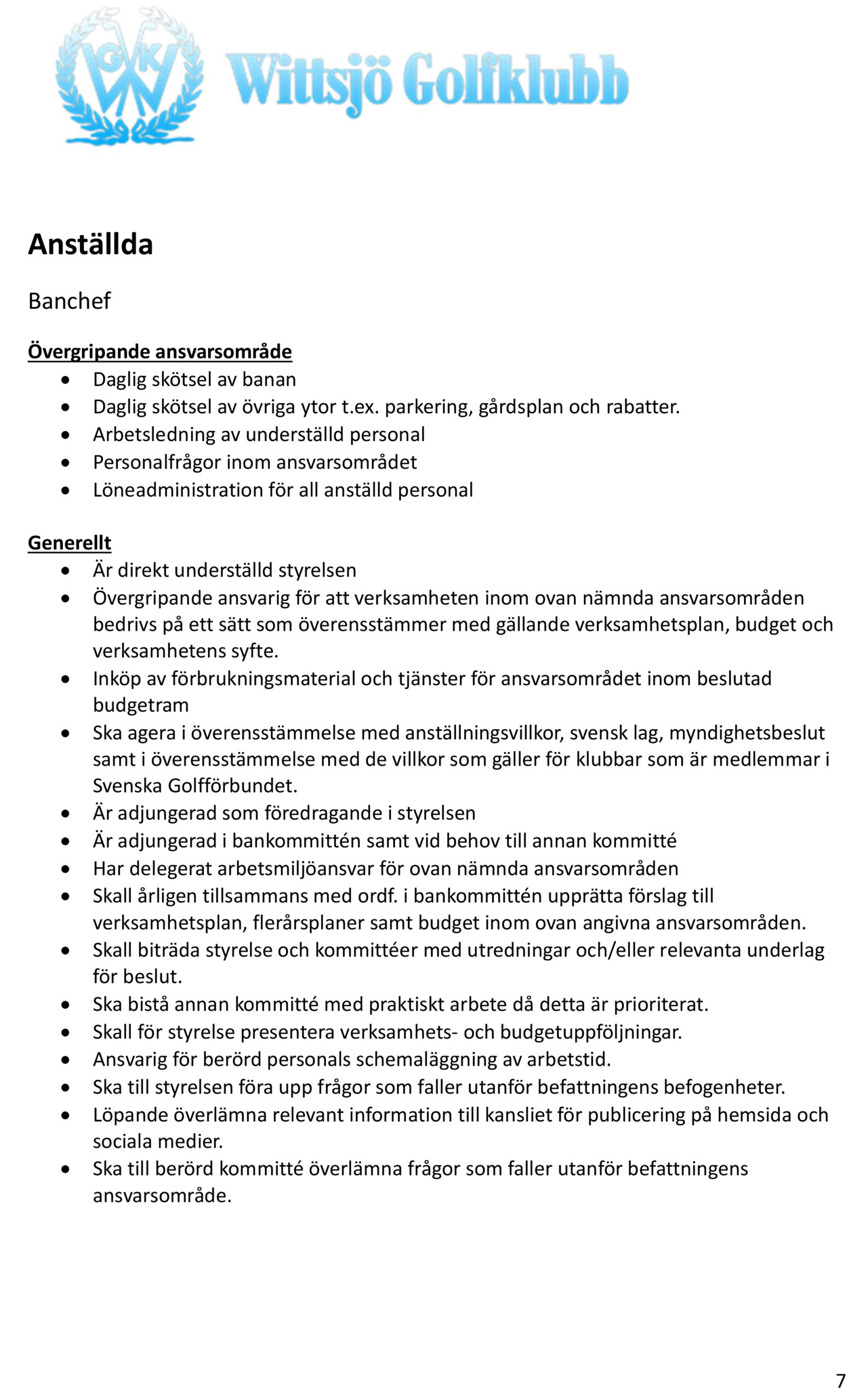 Styrelse och anställda på Wittsjö GK