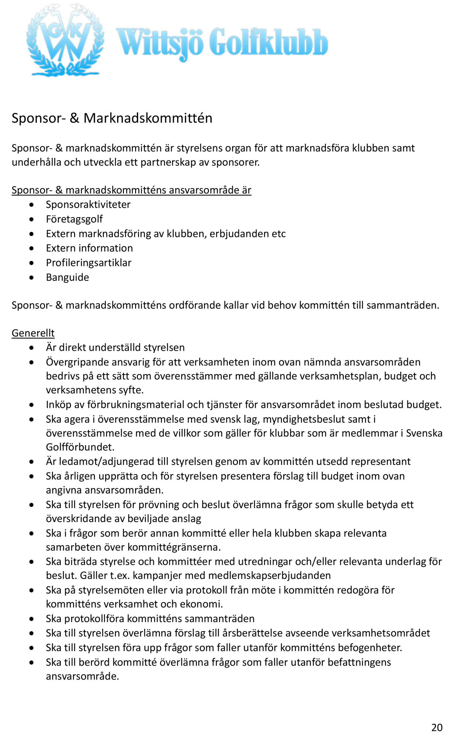 Ordförande sponsor/marknadskommittén